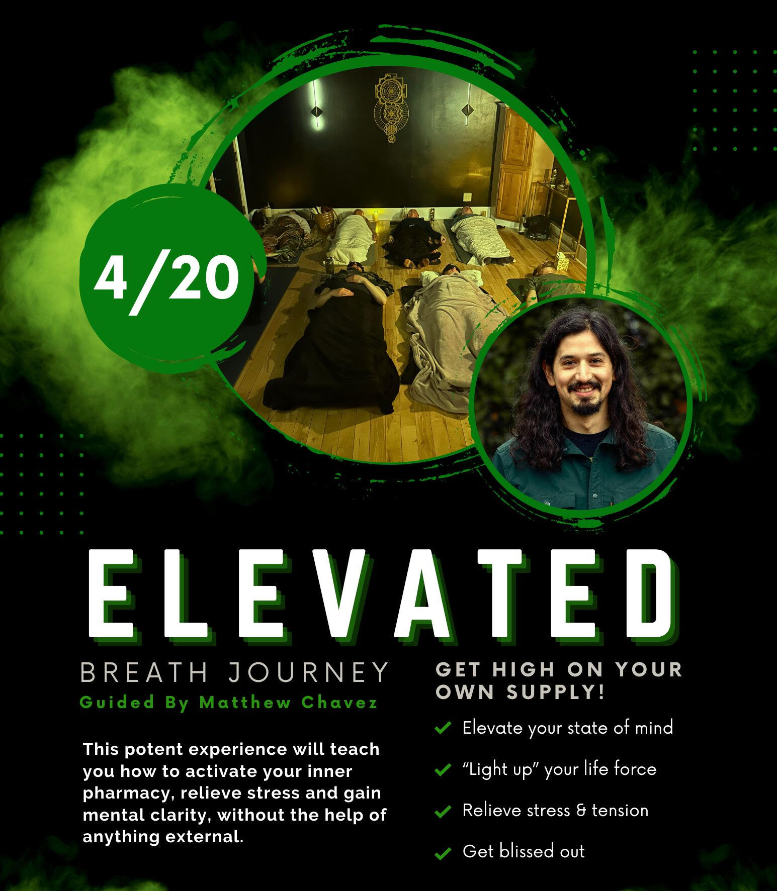 This potent experience will teach you how to activate your inner pharmacy, relieve stress and gain mental clarity, without the help of anything external - all through your own breath.